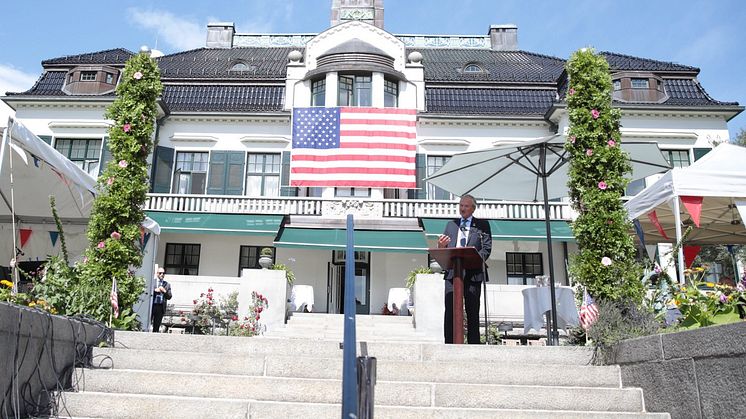• Norwegians koncernchef Bjørn Kjos håller tacktal på amerikanska ambassaden i Oslo
